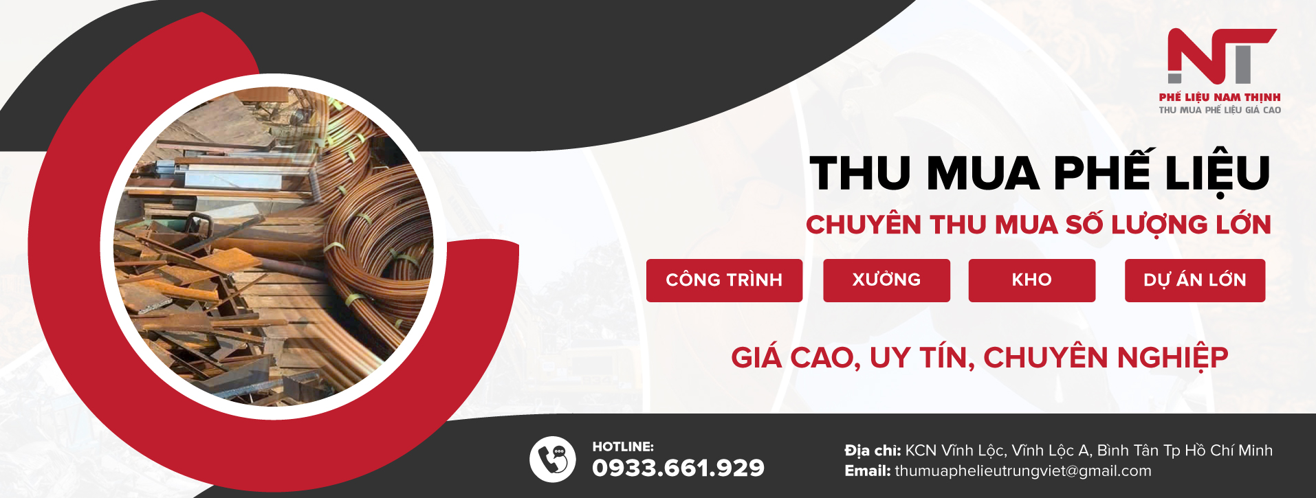 Công ty Phế Liệu Nam Thịnh tự hào là công ty thuộc Top 10 công ty chuyên thu mua phế liệu giá cao tại HCM , Bình Dương, Đồng Nai, Long An, Tây Ninh…
